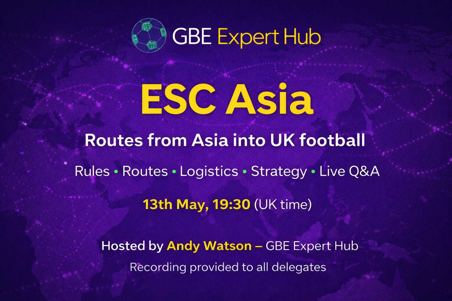 The event will follow a similar format to ESC Africa recently. It will be on May 13th, from 1930 UK time, and should last 90 minutes. There will be opportunity to ask any questions of myself during and after the session, and there will be four guests who will add knowledge and flavour for the Asian market as well.