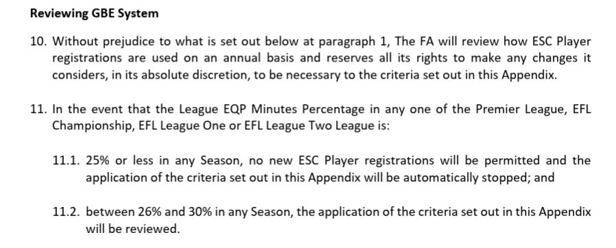 There is an important caveat buried in the small print of the ESC deal: the FA can scrap it if EQP minutes fall below 25 per cent for the season in any league. And that is the lever the FA is threatening to pull right now.